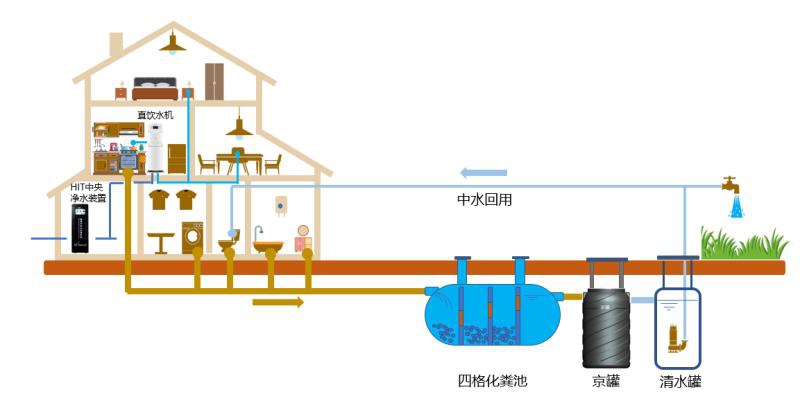 “京罐”主要用来处理农户家庭排放的粪便污水和灰色污水(厨房、浴室、洗衣等污水),是一种分散式污水处理设备,安装在农户院落内,污水处理达标后的中水直接就地回用,设备具有五大优势: